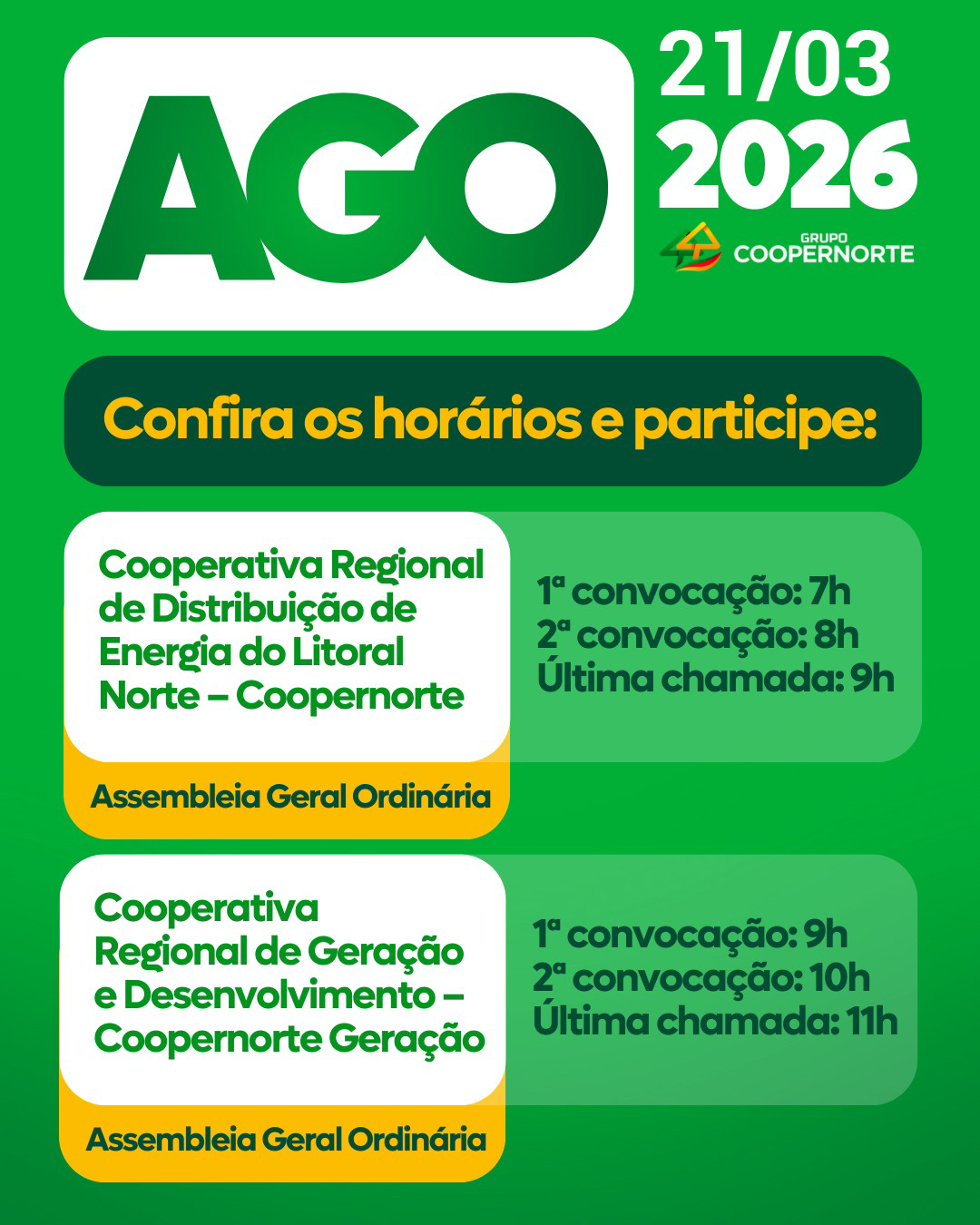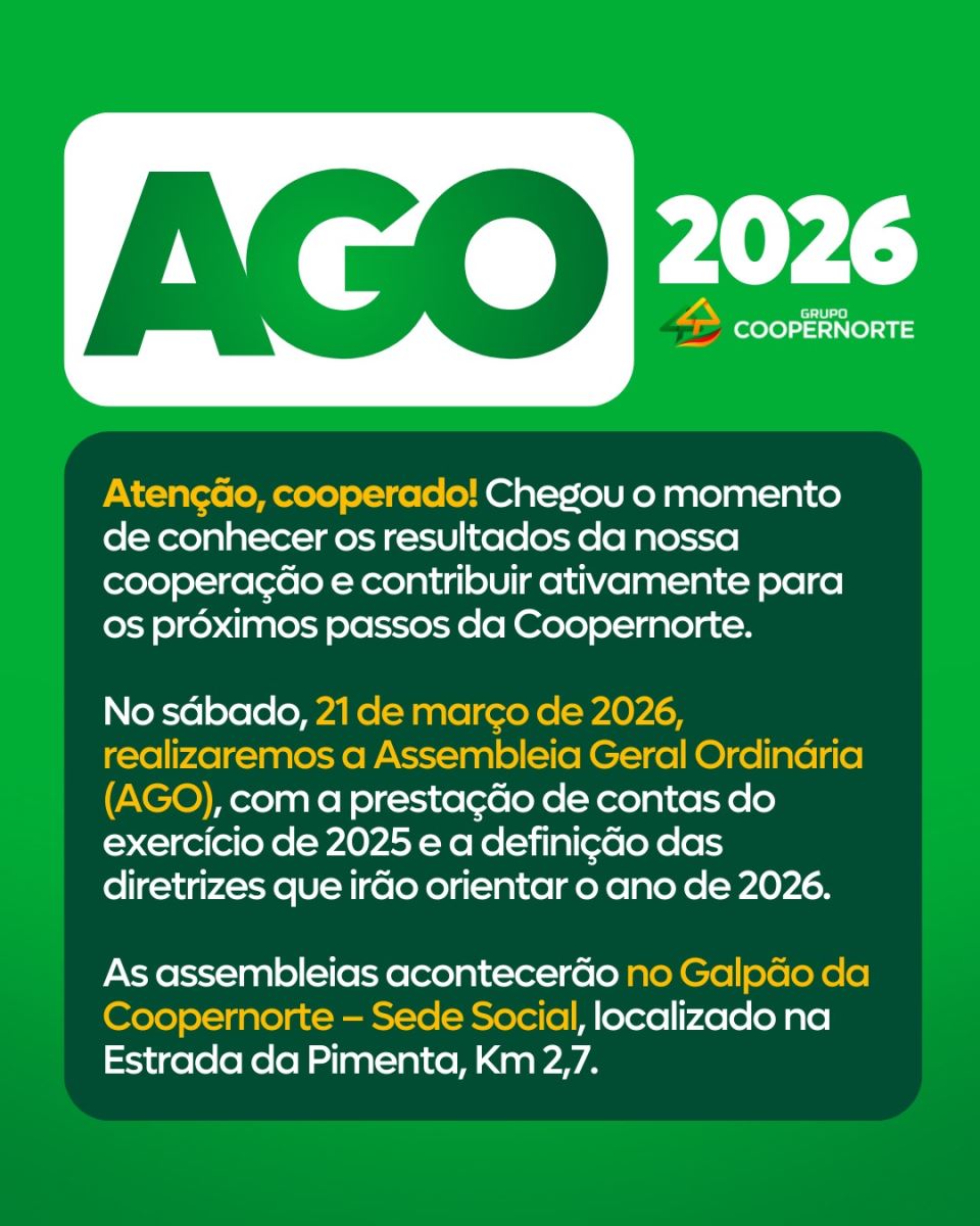Assembleia Geral Ordinária COOPERNORTE DISTRIBUIÇÃO E COOPERNORTE GERAÇÃO 2026.